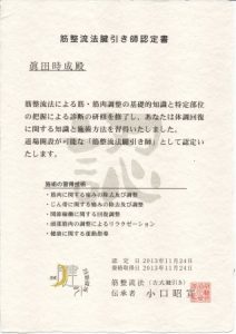 5年以上かかりましたが腱引き師としての免許皆伝。現在は賢人の免許皆伝認定を頂いております。