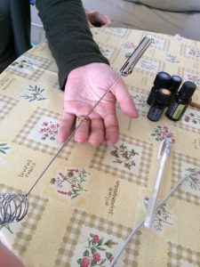 最適な精油をオーラメーターで割り出します。オレンジ・・レモン・・ペパーミントとチェックして