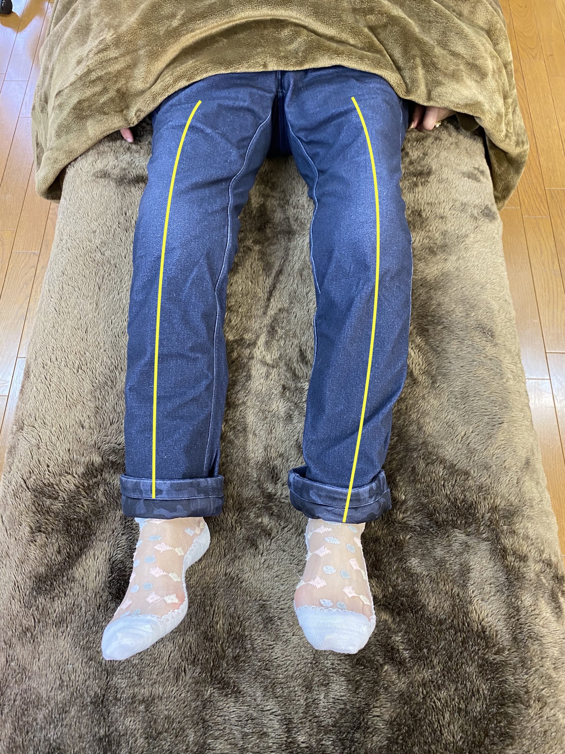 筋肉の状態を見てみると太ももの外側の腸脛靭帯と内転筋や薄筋に強い硬直、そして膝の後ろ側と足首周辺にも強い硬直があり、脛骨と腓骨の位置がズレていました。