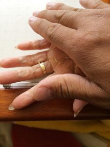 この状態で母に指や腕の痛みなどを尋ねたら、「あら!痛くない。。」と言っていました。